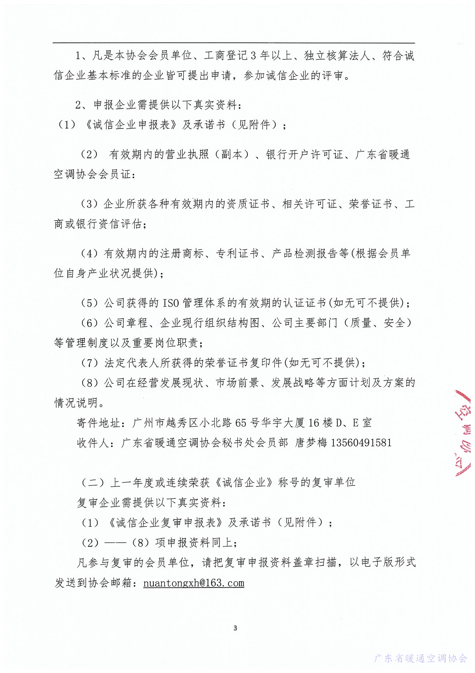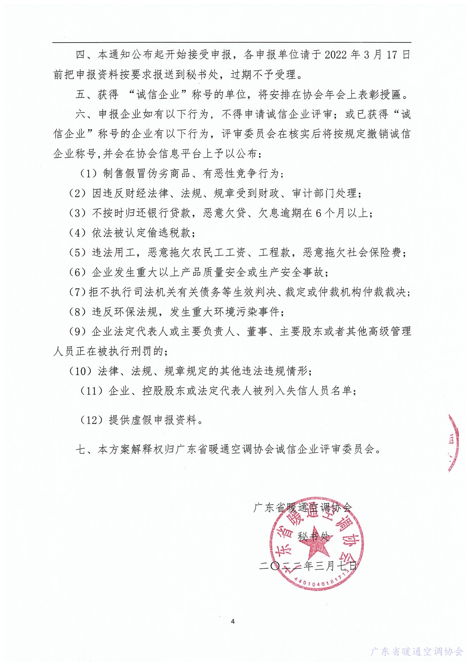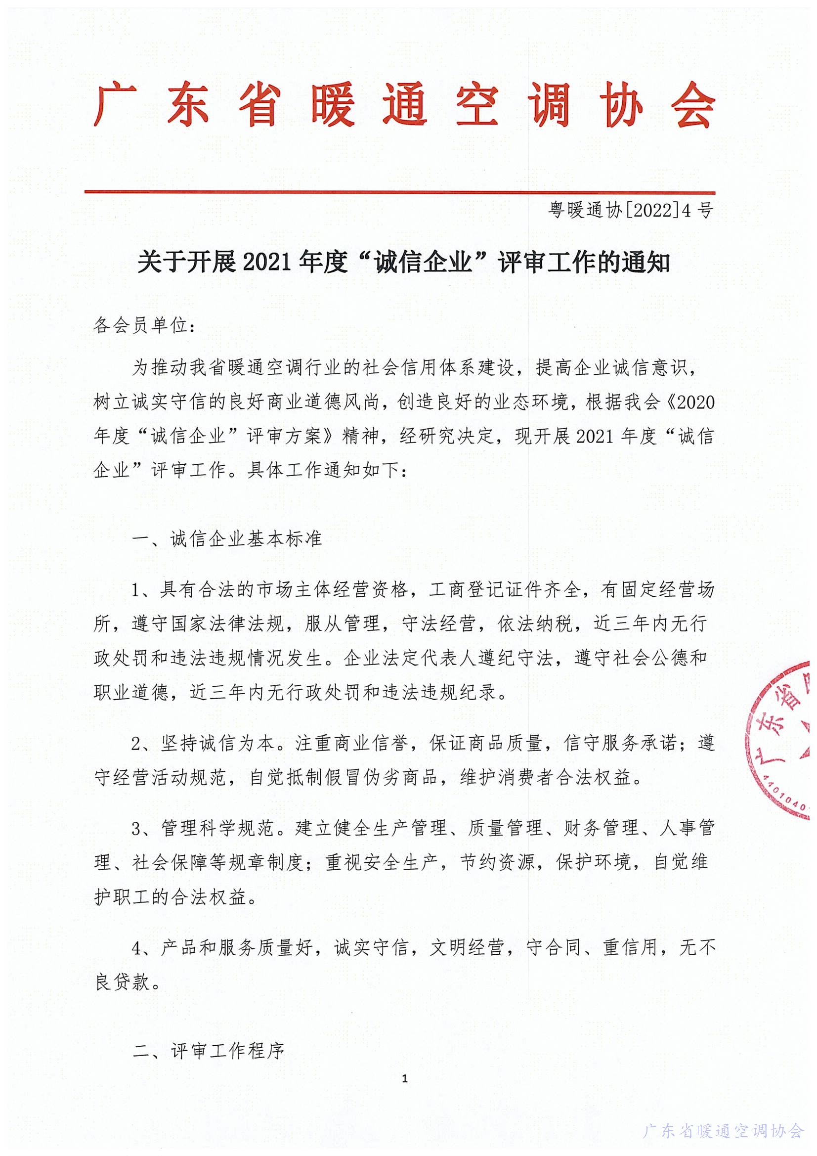 敬請各會員單位認真閱讀《關于開展2021年度“誠信企業”表彰工作的通知》,對照通知中評審標準自評合格的單位,自愿申請參加協會的“誠信企業”表彰(含復審),填報資料。提交資料時間于2022年3月17日截止。對參評的企業,評審委員會將按方案進行審批和表彰,本次不收取費用。